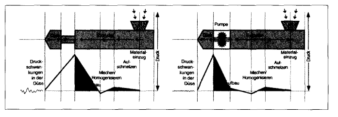在批量生產時,經常需要開、停機。一般在每次開機后,熔體壓力及相關的參數要達到正常而穩(wěn)定的數值通常需要花費很長的時間,也就是說排料期很長。如果在擠出機中安裝了??迫垠w泵,就可以快速地使熔體的相關參數值達到穩(wěn)定狀態(tài),相應地也就減少了排料時間,從而節(jié)省了原材料。同樣地,在生產中使用色母粒的情況下,產品換色往往需要很長時間,安裝熔體齒輪泵后,明顯減少了排廢料的時間。